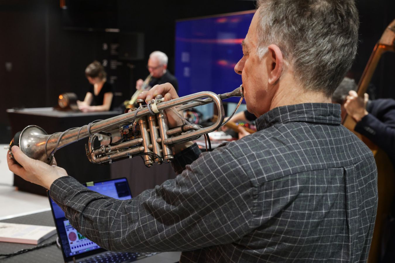 On Thursday 27 February, the hall of the MED building at EPFL was filled with complex, bold and innovative sounds during the evening of performances entitled Orpheus’s Machines: Music, Thought and Technology! Led by Jonathan Impett, co-curator of the Musica ex Machina exhibition, artist-researchers from the Orpheus Instituut in Ghent unveiled their technological creations and experimental instruments to an absorbed audience, the fruit of their research into the interconnection between humans and machines in the creation of music.